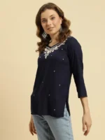 Home Short Kurtis Blue Kashmiri Silk Work Short Kurti