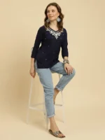 Look ethereal in this Aari work Kurti, freshly crafted in the lightness and comfy feel of cotton.