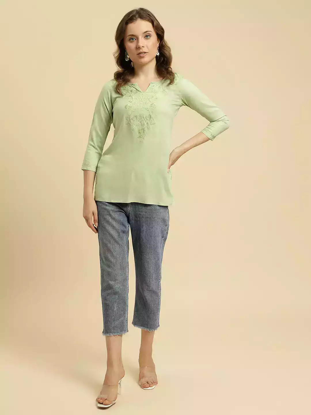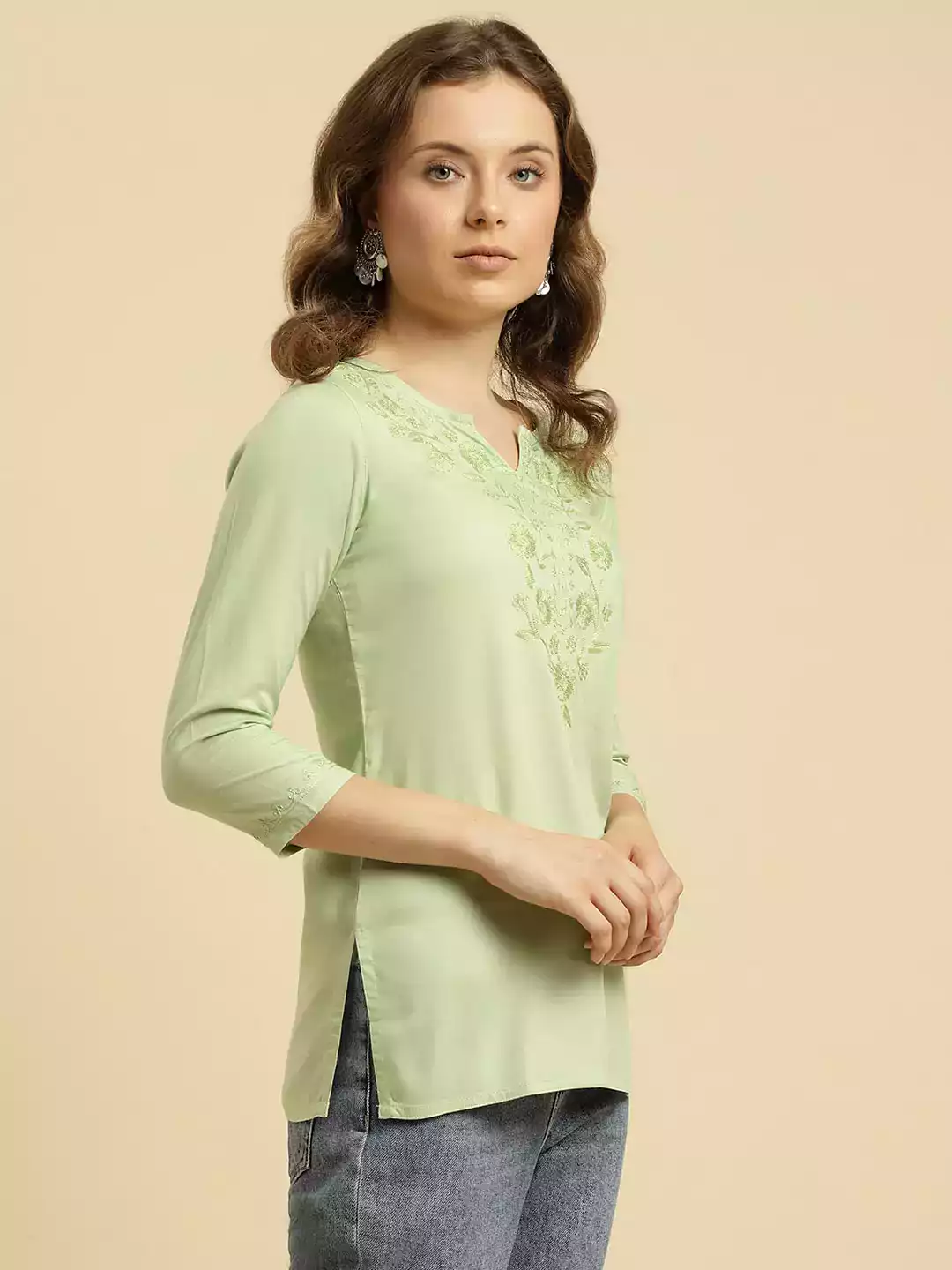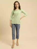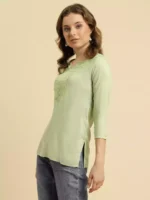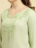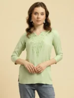 Pista Green Kashmiri Silk Work Short Kurti