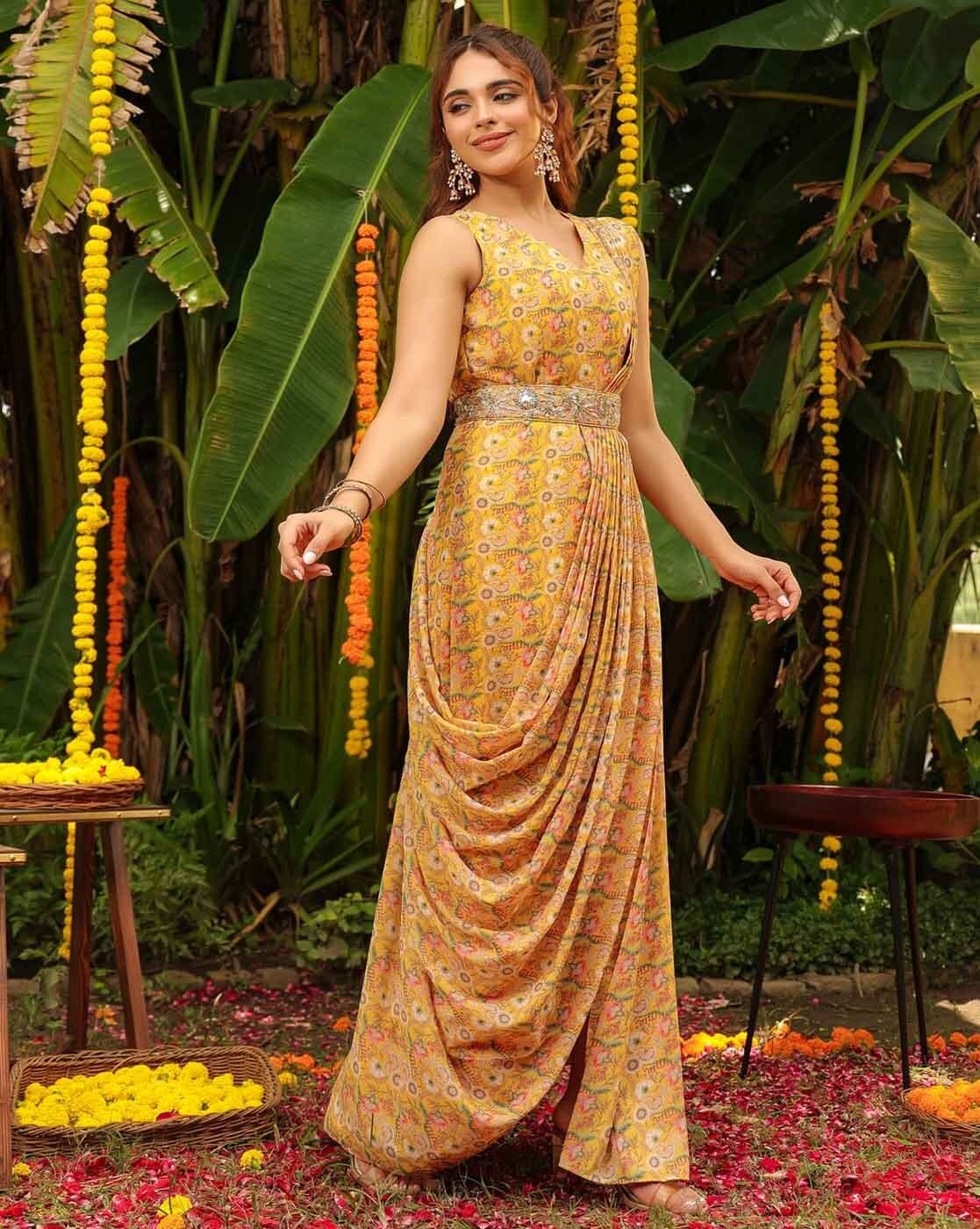 Women Floral Print Pre-Stitched Saree with Contrast Border